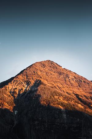 A lone peak lit up at sunset somewhere among the mountains in Banff National Park.